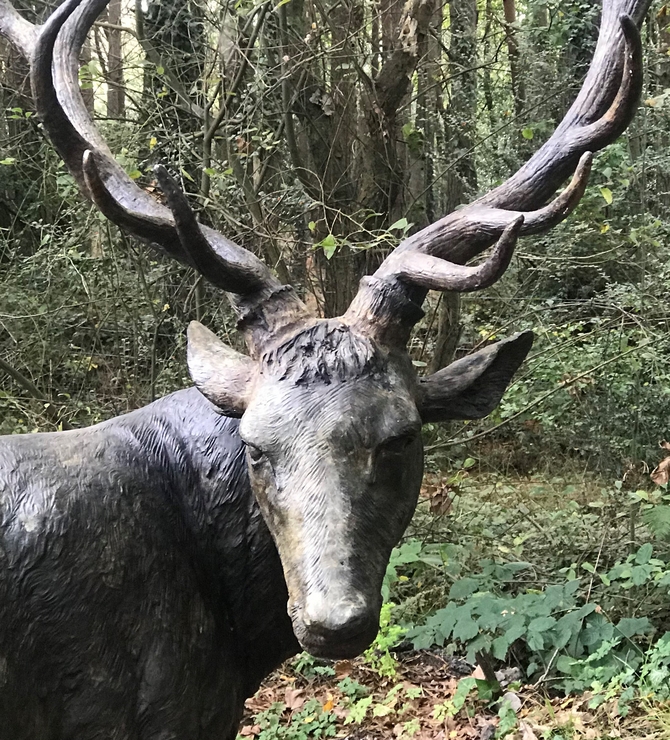 These two full size bronze casts of fully grown adult stags. They are magnificent and a great talking point where ever situated.